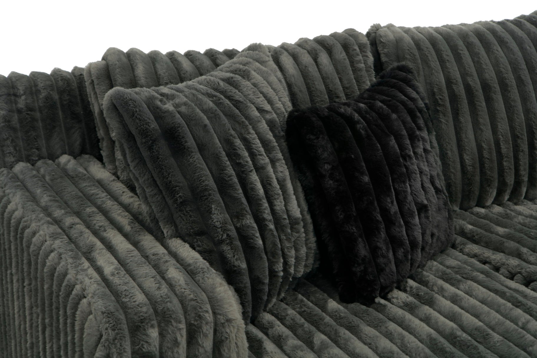 Upholstered in the distinctive Mondo fabric, this sectional features a bold, wide-wale texture that offers a cozy, plush feel and a high-impact, contemporary look. Its massive size and clean-lined TUX arms make it the ultimate centerpiece for large homes and serious lounging.