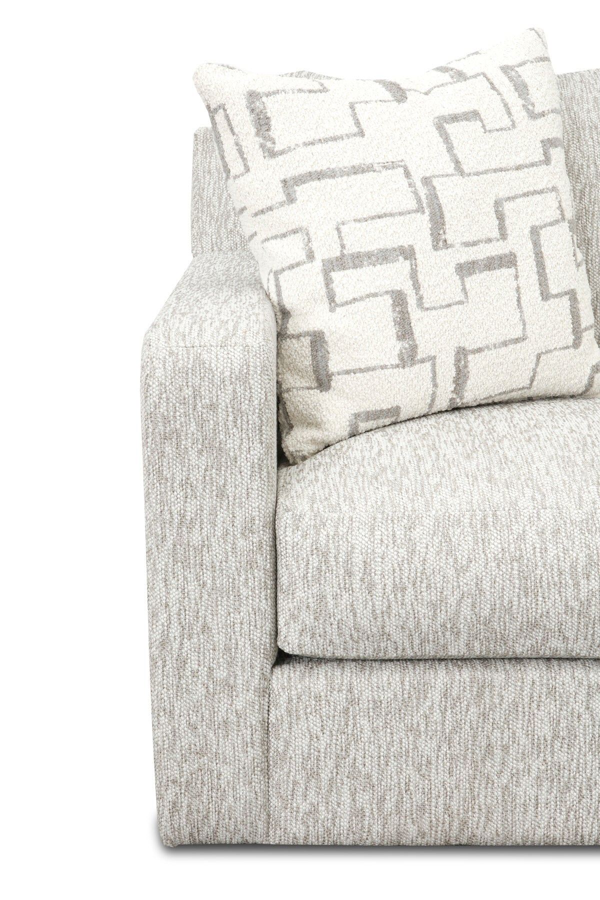 Upholstered in Utopia Dove, a beautiful, light grey textured fabric, this L-shaped sectional brings a bright, versatile, and contemporary look to any room. Its tailored, clean-lined silhouette provides a chic backdrop for both relaxation and entertaining.