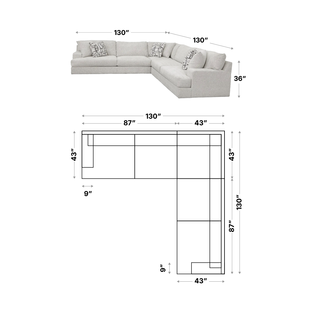 | 3pc sectional | 126 in. | 43 in. | 36 in. |