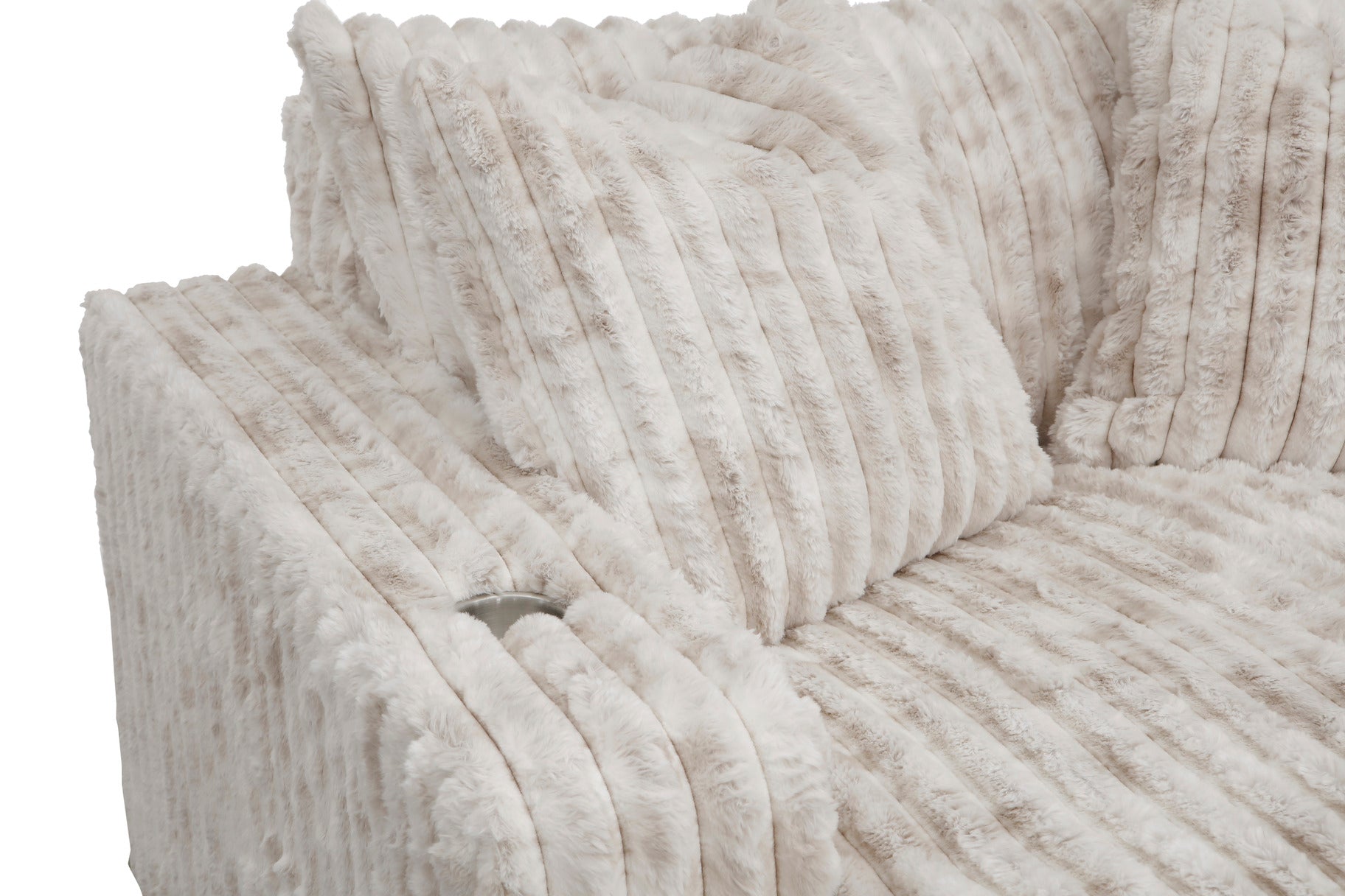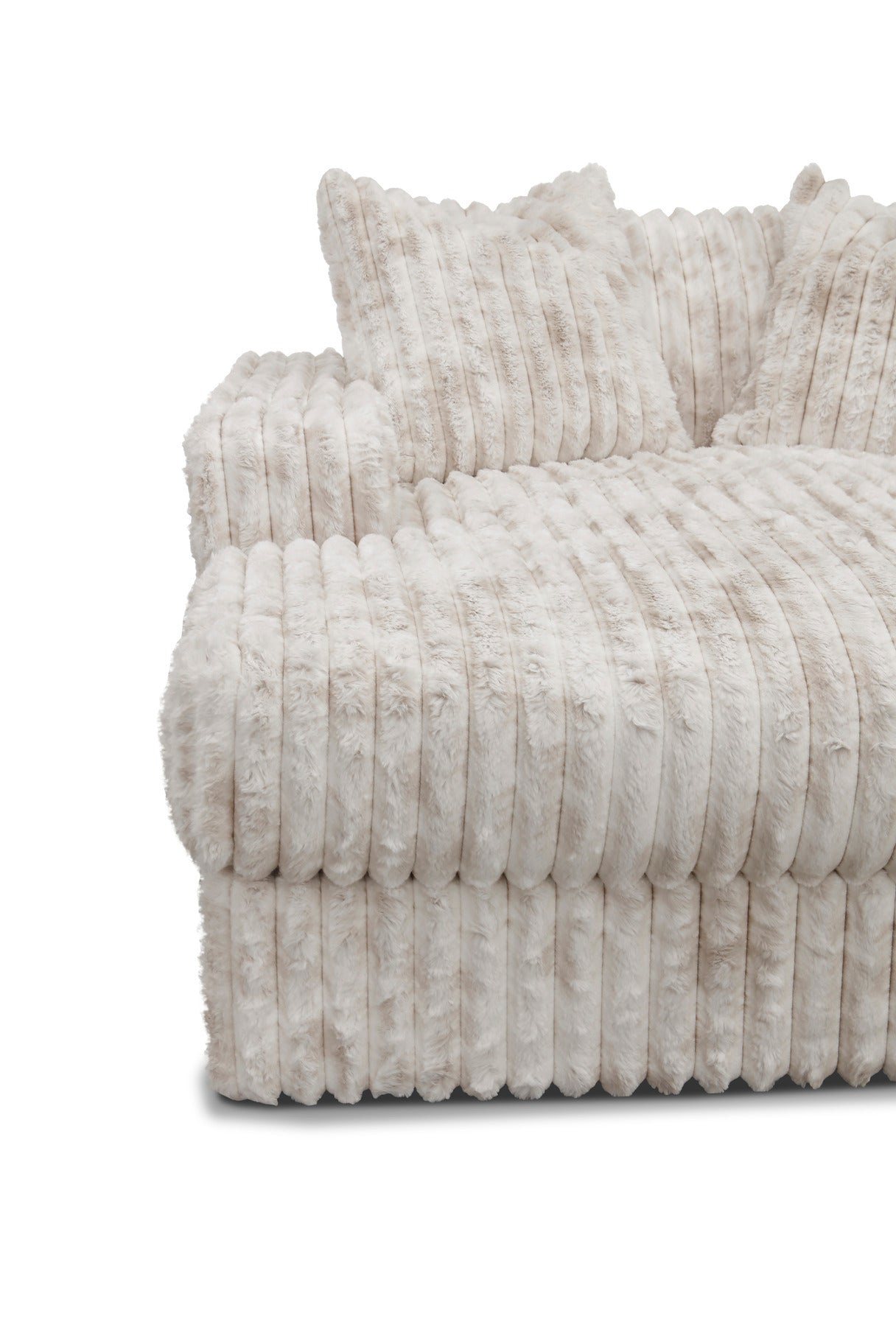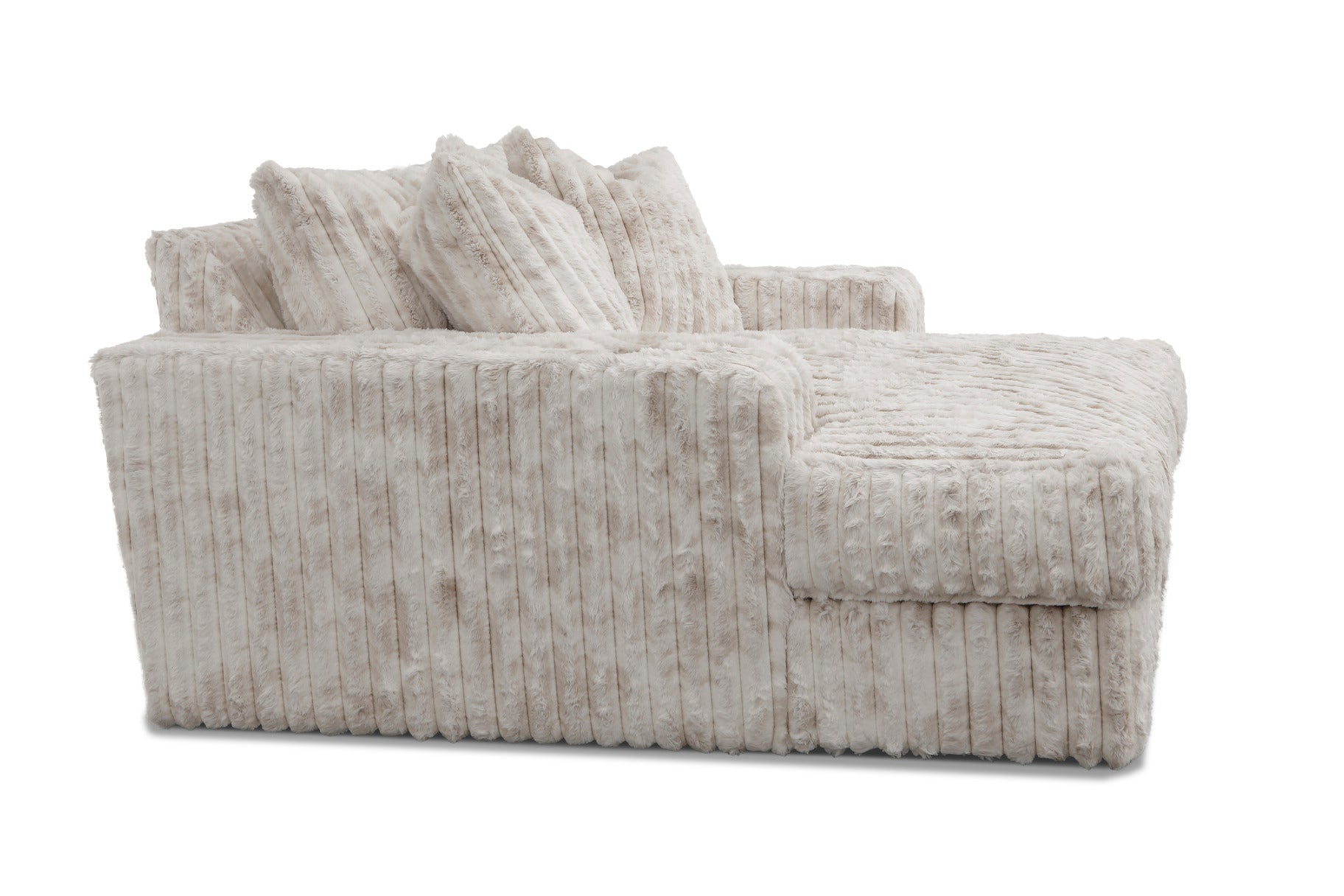 This oversized piece is an instant invitation to relax, featuring a unique, thick shag texture in the gorgeous Big Wig Sand—a warm, creamy neutral with multi-tonal depth. This high-impact fabric makes the sectional a luxurious focal point in any contemporary space.