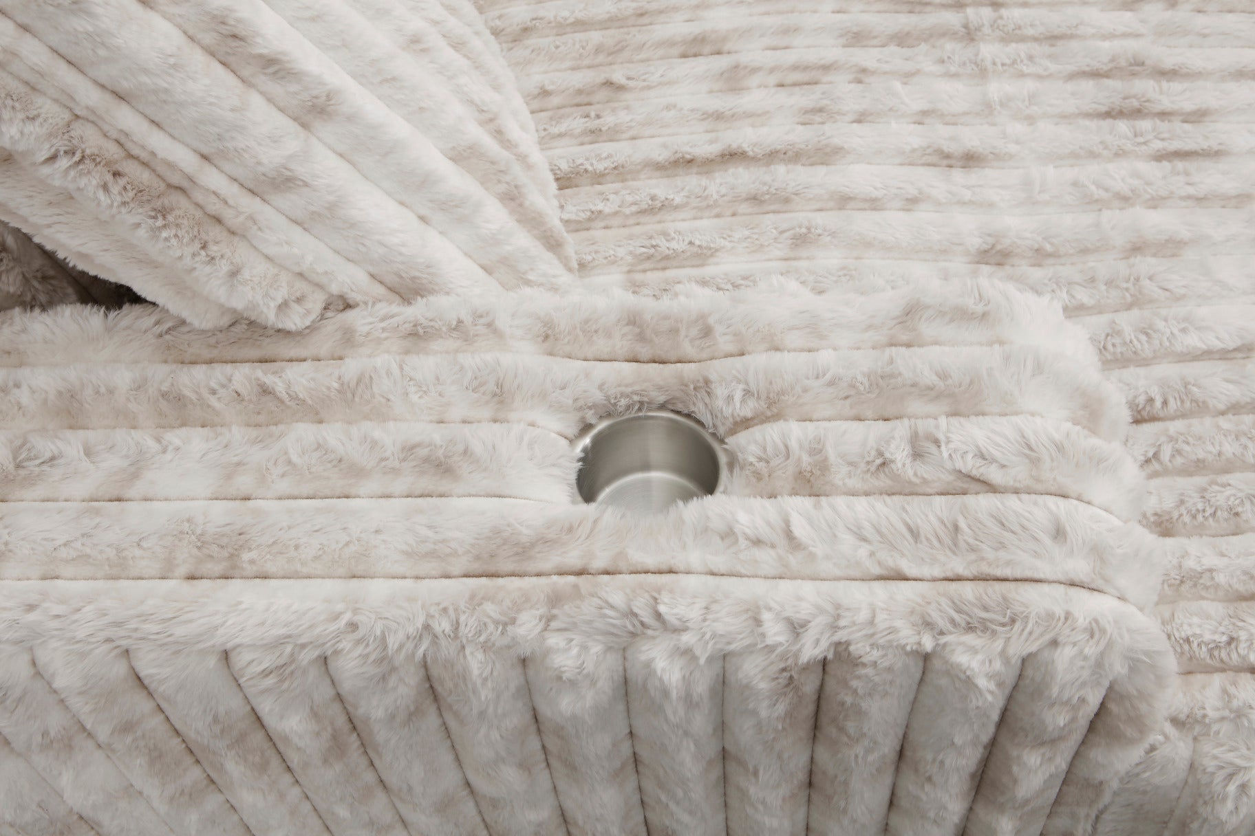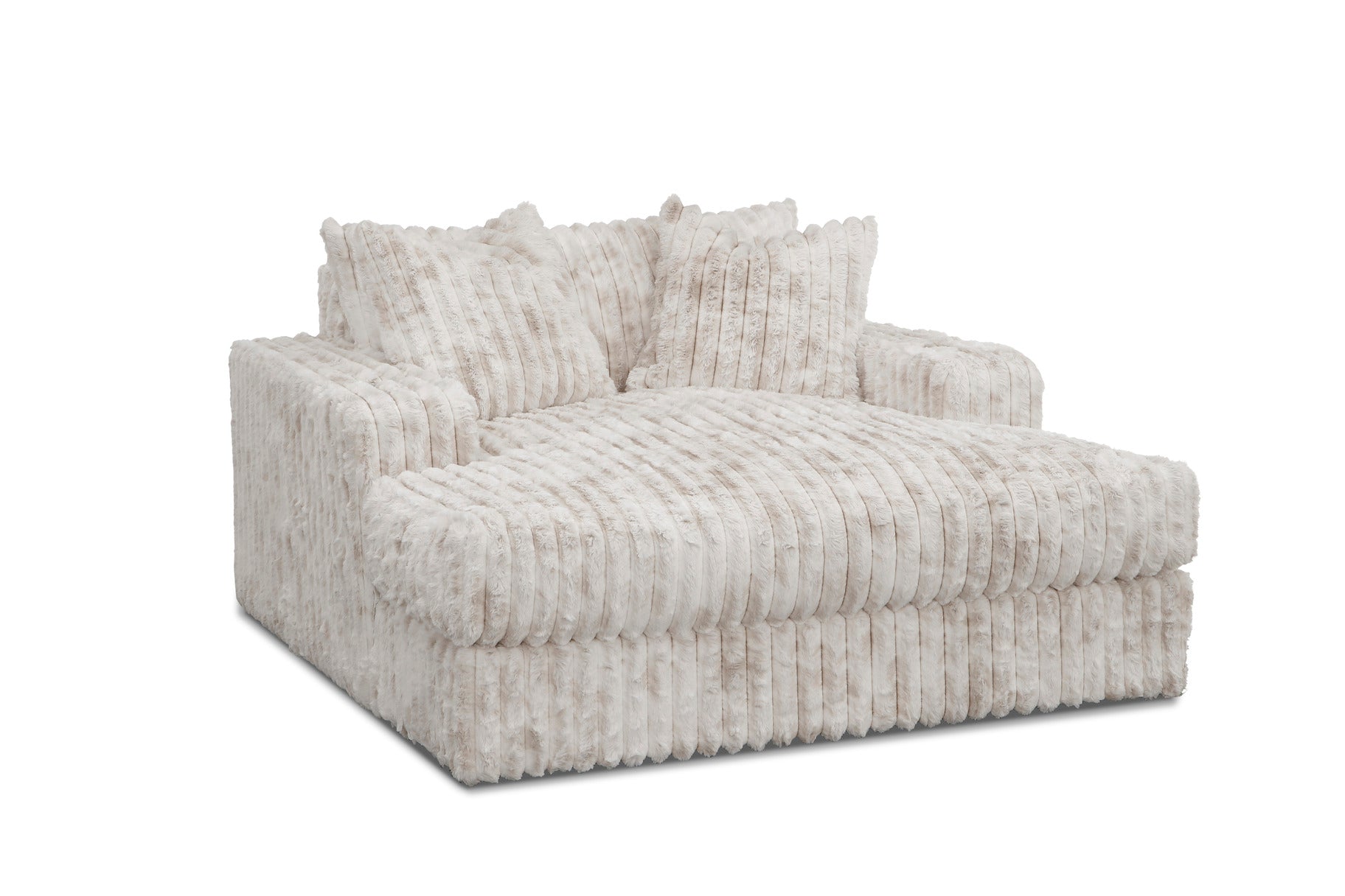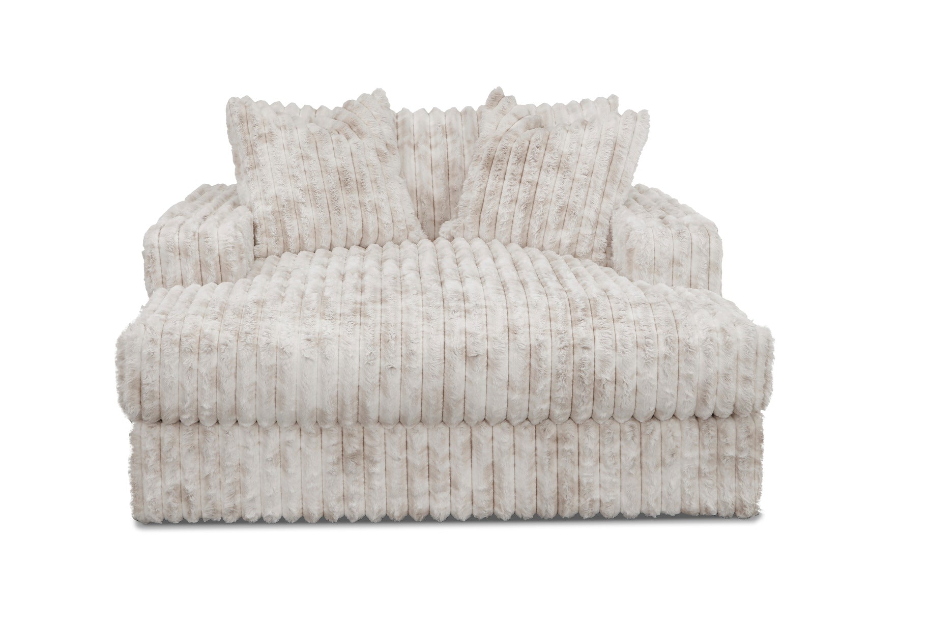 This oversized piece is an instant invitation to relax, featuring a unique, thick shag texture in the gorgeous Big Wig Sand—a warm, creamy neutral with multi-tonal depth. This high-impact fabric makes the sectional a luxurious focal point in any contemporary space.