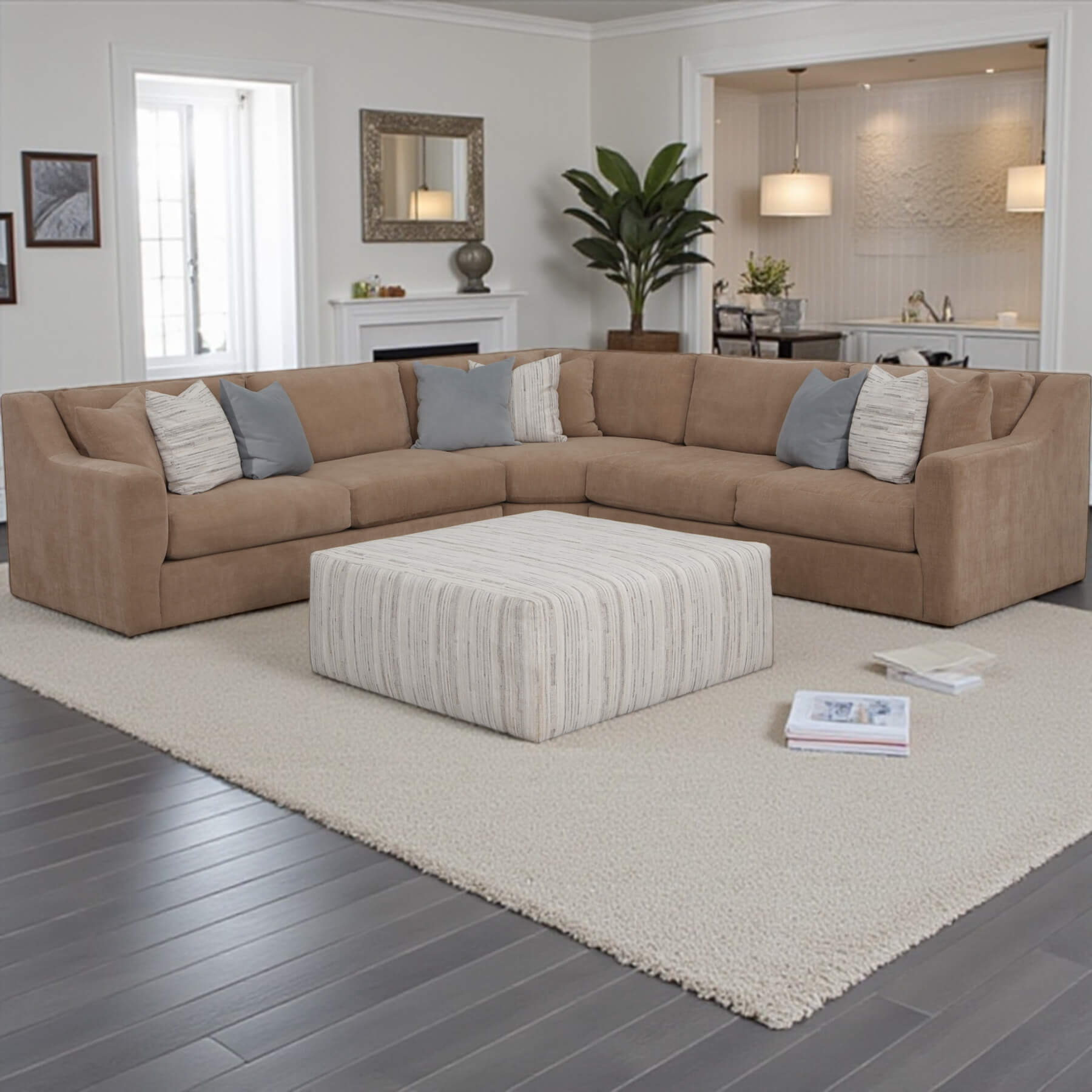 This spacious L-shaped sectional, upholstered in the warm, inviting Chandler Cocoa fabric, instantly brings a sense of grounded elegance to your living space. The soft, refined brown tone is both versatile and luxurious, creating an inviting atmosphere for any occasion.