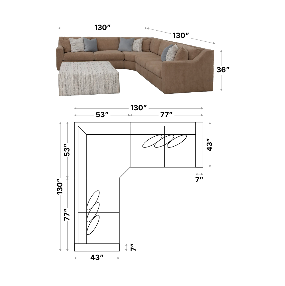 | 3pc sectional | 130 in. | 130 in. | 36 in. |