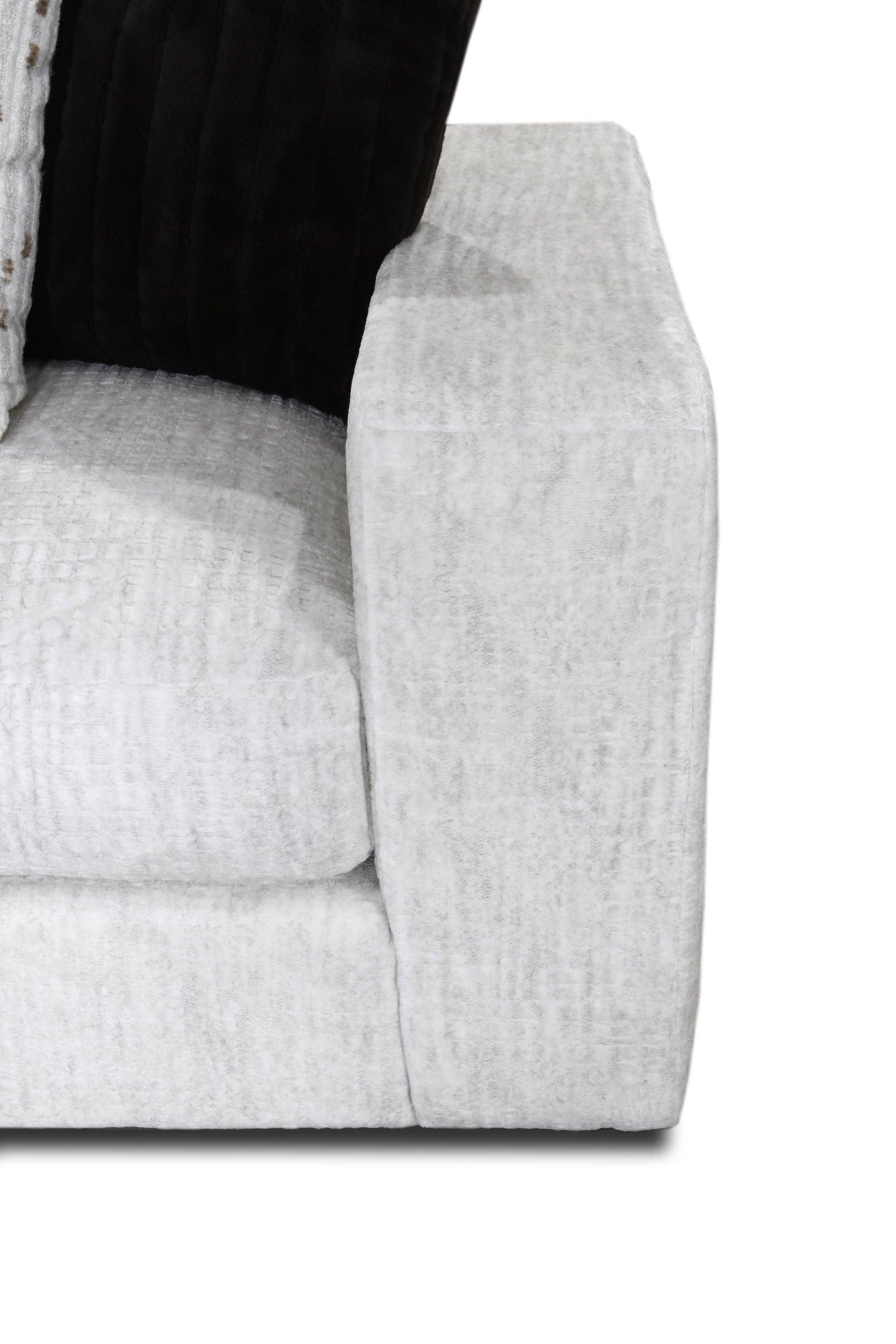 Designed to be the ultimate lounging spot, this generous 3-piece sectional features plush track arm styling and a roomy seat depth, making it the ideal centerpiece for family life and entertaining. The beautiful, bright fabric—a multi-tonal white/light grey—is a performance fabric, ensuring not just stunning looks, but also easy cleanability and low maintenance.